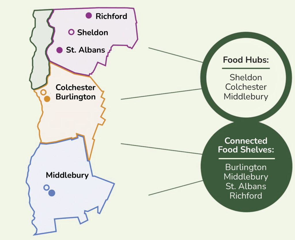 In addition, Feeding Champlain Valley oversees four food shelves: the Burlington Food Shelf, the Addison Food Hub, NorthWest Family Foods, and the Richford Food Shelf.